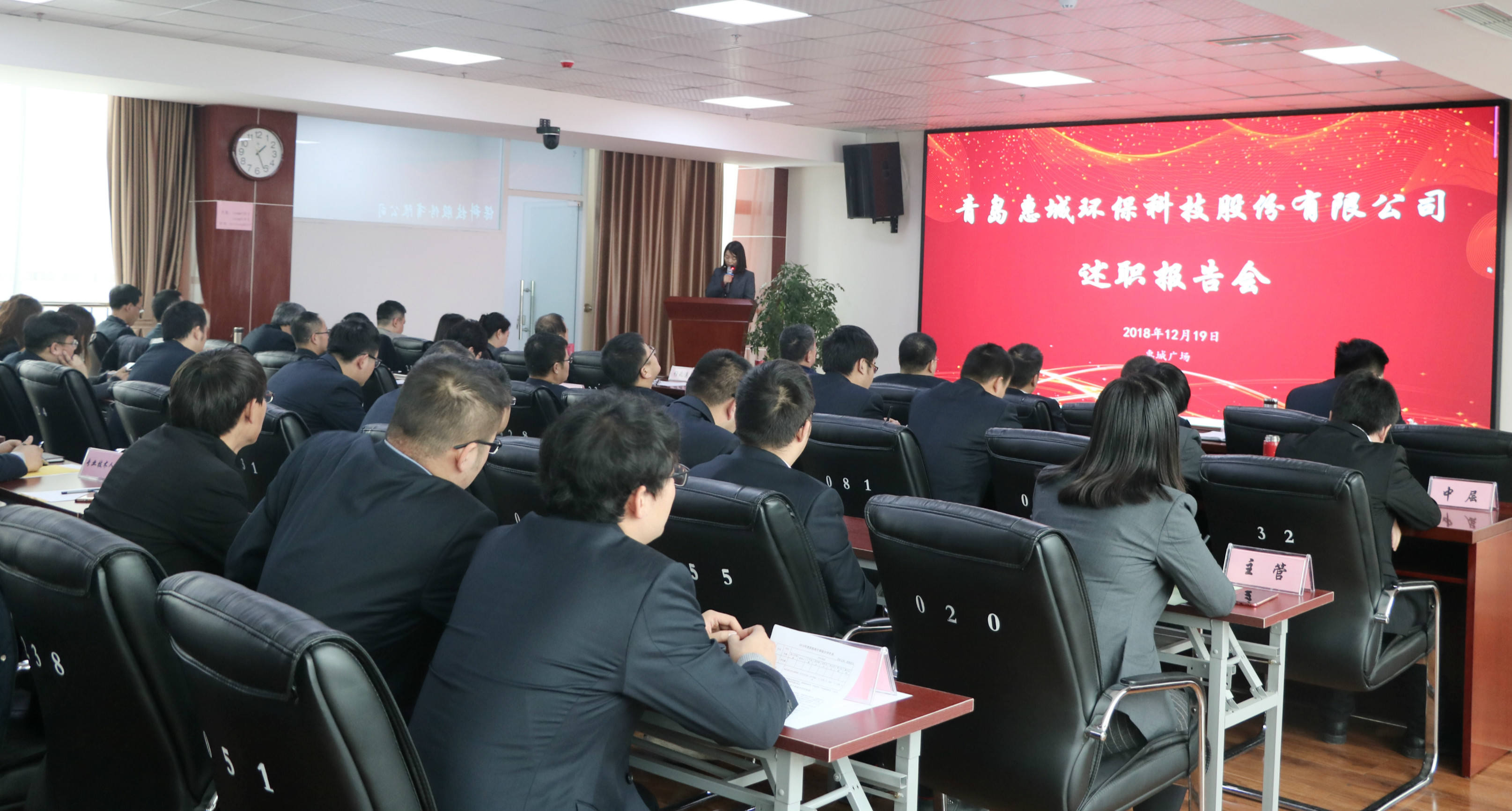 為深入了解干部實績,切實提高干部素質,打造一支能力出眾、引領發展、忠誠企業、愛護員工的干部隊伍,2018年12月19日下午,惠城環保2018年度中高層干部述職報告會在研發中心418會議室召開。公司董事長張新功、常務副總經理葉紅及其他中高層管理干部、專業技術人員、一般管理人員等100余人參加了此次述職報告會。