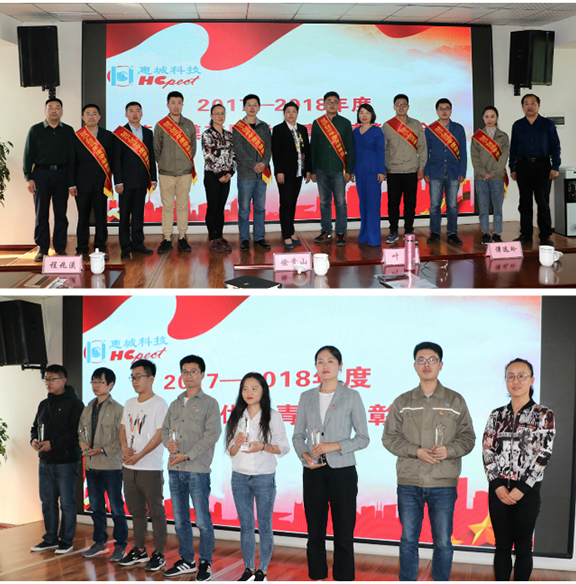 公司2017-2018勞動模范和優秀青年上臺領獎
