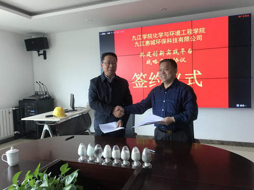 11月29日上午,九江學院化環學院嚴平院長帶領化環學院副院長曹小華教授、占昌朝教授、張新華博士等一行16人蒞臨九江惠城環保科技有限公司進行校企合作深度對接。九江惠城環保董事長、國家“萬人計劃”張新功教授、公司常務副總虞勝福等領導熱情接待了嚴院長一行。校企雙方圍繞項目研發、人才培養、平臺共建等事宜進行了深入交流,并舉行了校企共建創新實踐平臺戰略合作協議的簽約儀式。