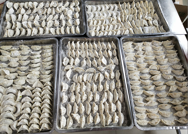 大家齊心協力,用心包出的餃子如一排排元寶華麗亮相。每一個餃子都代表對員工的一份關愛,一份祝福。