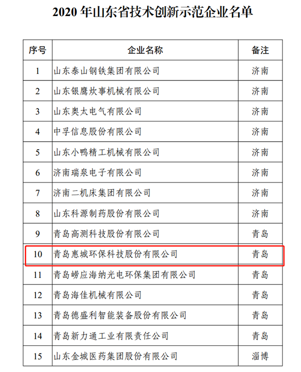 近日,經山東省工信廳認定,我公司成功入選2020年山東省技術創新示范企業。