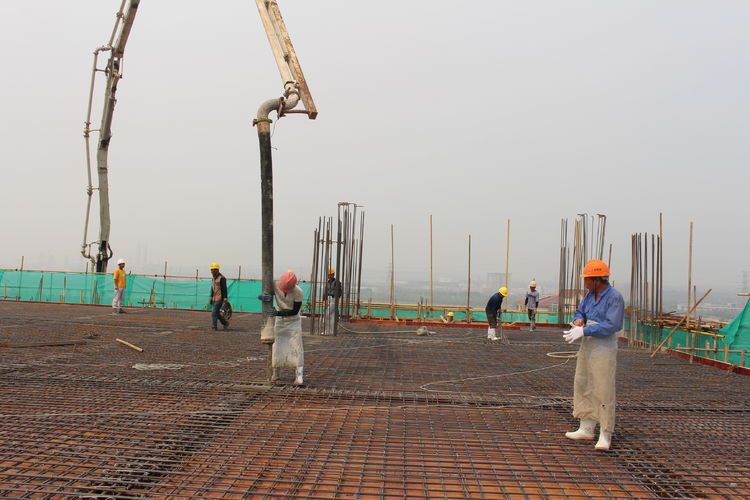 在施工單位的帶領下,公司領導來到分子篩廠房頂層參觀建設情況。分子篩廠房建筑面積22308㎡,是整個項目中面積最大、工程量最大、施工難度最大,設計、工藝最復雜的建筑單體。在臺風、高溫極端天氣及交叉作業、疫情等諸多不利因素影響下,為加快推進建設進程,項目建設指揮部全體成員放棄節假日休息,以“5+2”、“白+黑”的戰斗精神,全部深入一線進行質量檢查和安全督導,他們迎難而上、披荊斬棘,是惠城精神的真實寫照;施工單位增加人員、機械設備,安排工人三班倒作業,保證施工現場24小時不停工;監理、勘察、造價等參建單位加班加點,“隨叫隨到,不叫也到”......各方精誠合作,共同推進,終于迎來了8月10日這一封頂時刻。