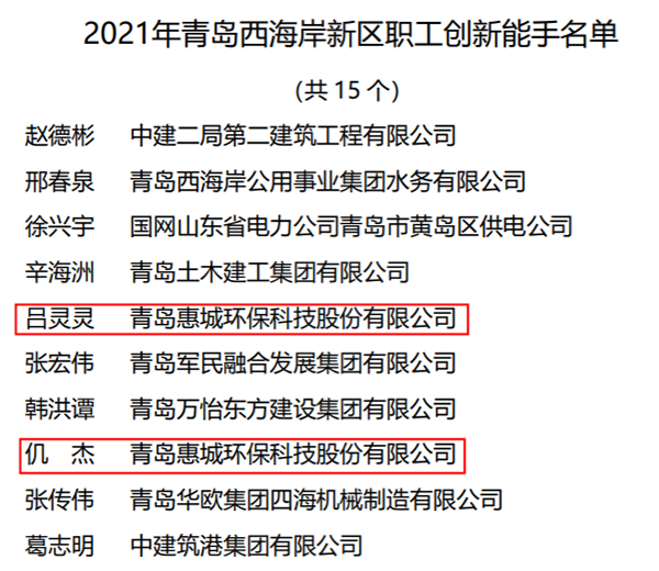 近日,青島西海岸新區總工會發布通知,公布“2021年度青島西海岸新區創新型班組、職工創新能手、職工創新成果”評選情況,公司工程技術研究中心榮獲新區創新型班組殊榮,該部門副主任呂靈靈、副主任工程師仉杰當選新區職工創新能手。