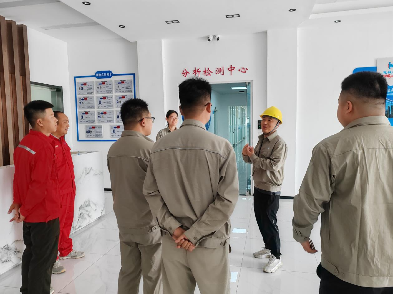 隨后,惠城環保生產管理部部長高舉潤、車間主管趙海洋、設備管理部部長劉德寶、HSE管理部主管宋春玲,與6位同事舉行了座談。圍繞生產管理、產品工藝、設備管理、安全管理、員工管理等關鍵主題,大家暢所欲言,分享經驗,提出問題,共同探討解決方案。惠城環保的管理人員傾囊相授,子公司的同事們虛心求教,思想的火花在交流中不斷迸發,共同探尋著優化工作流程、提升生產效率、保障生產安全、精益生產管理、凝聚團隊力量的有效路徑。